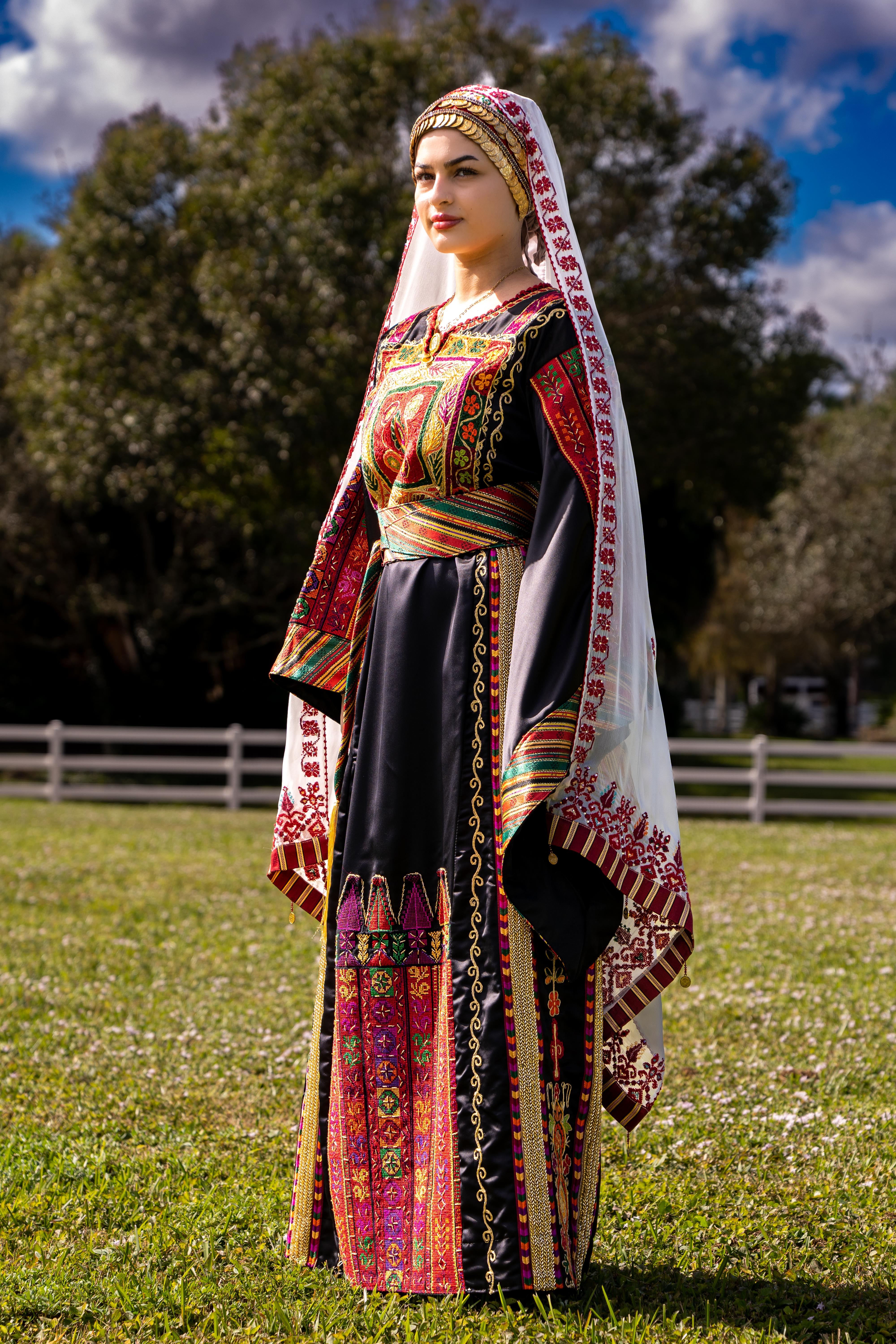 Embroidery patterns on the Palestinian thobe vary by village, with each design reflecting local customs and natural surroundings. From the 'tree of life' motif symbolizing growth and continuity to geometric shapes representing protection, these patterns are a rich tapestry of tradition passed from mother to daughter, preserving cultural wisdom.